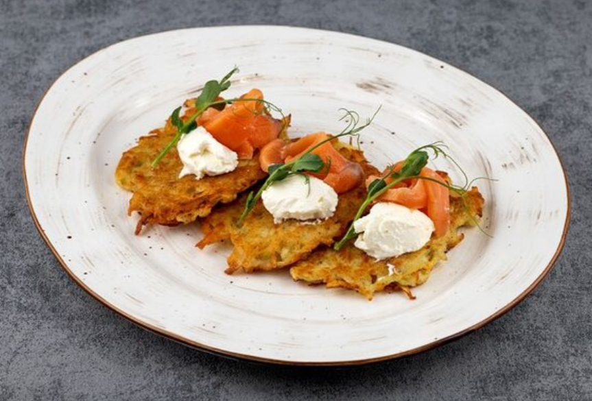 Лосось малой соли, картофель, твороженный сыр, зелень