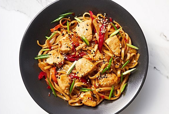 Сочная свиная вырезка обжаренная на гриле, подаётся с овощами гриль и соусом